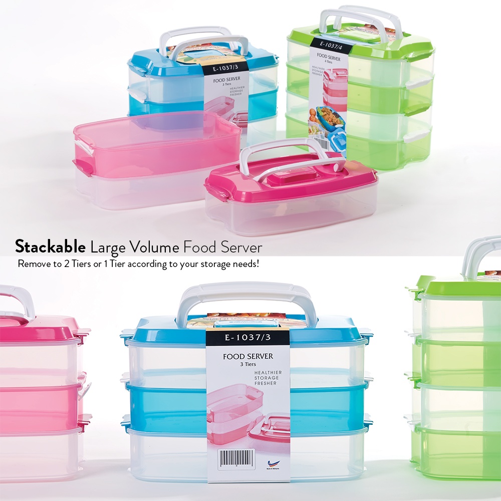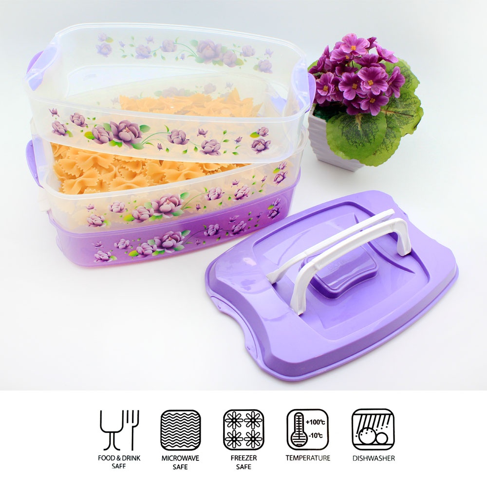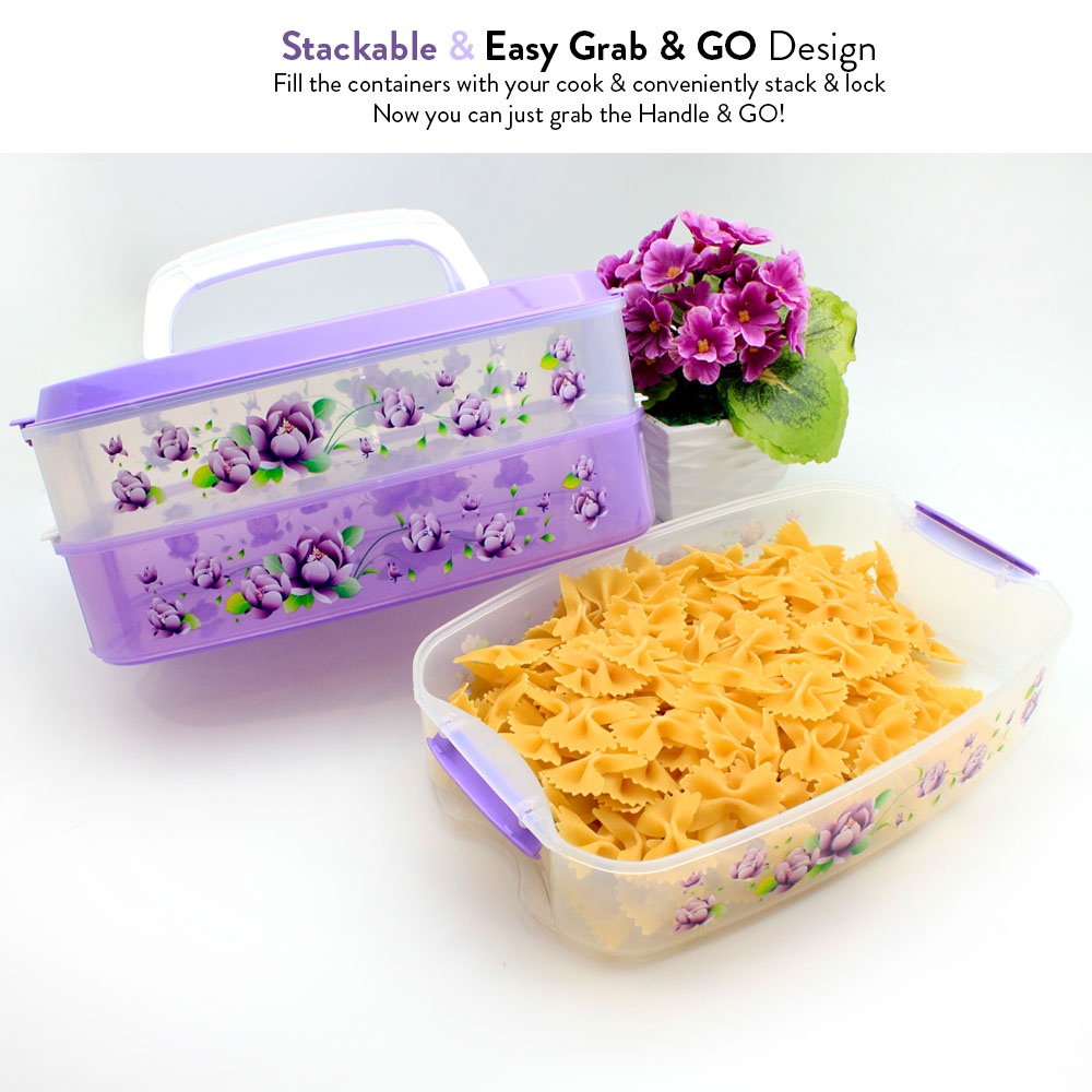 Elianware 3 Tiers Grab & GO BPA Free Purple Floral Food Container